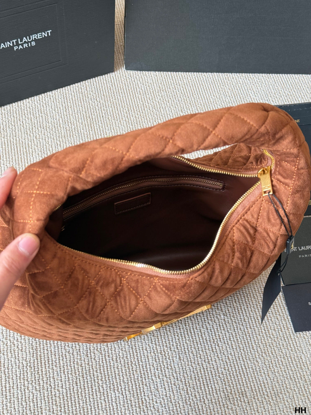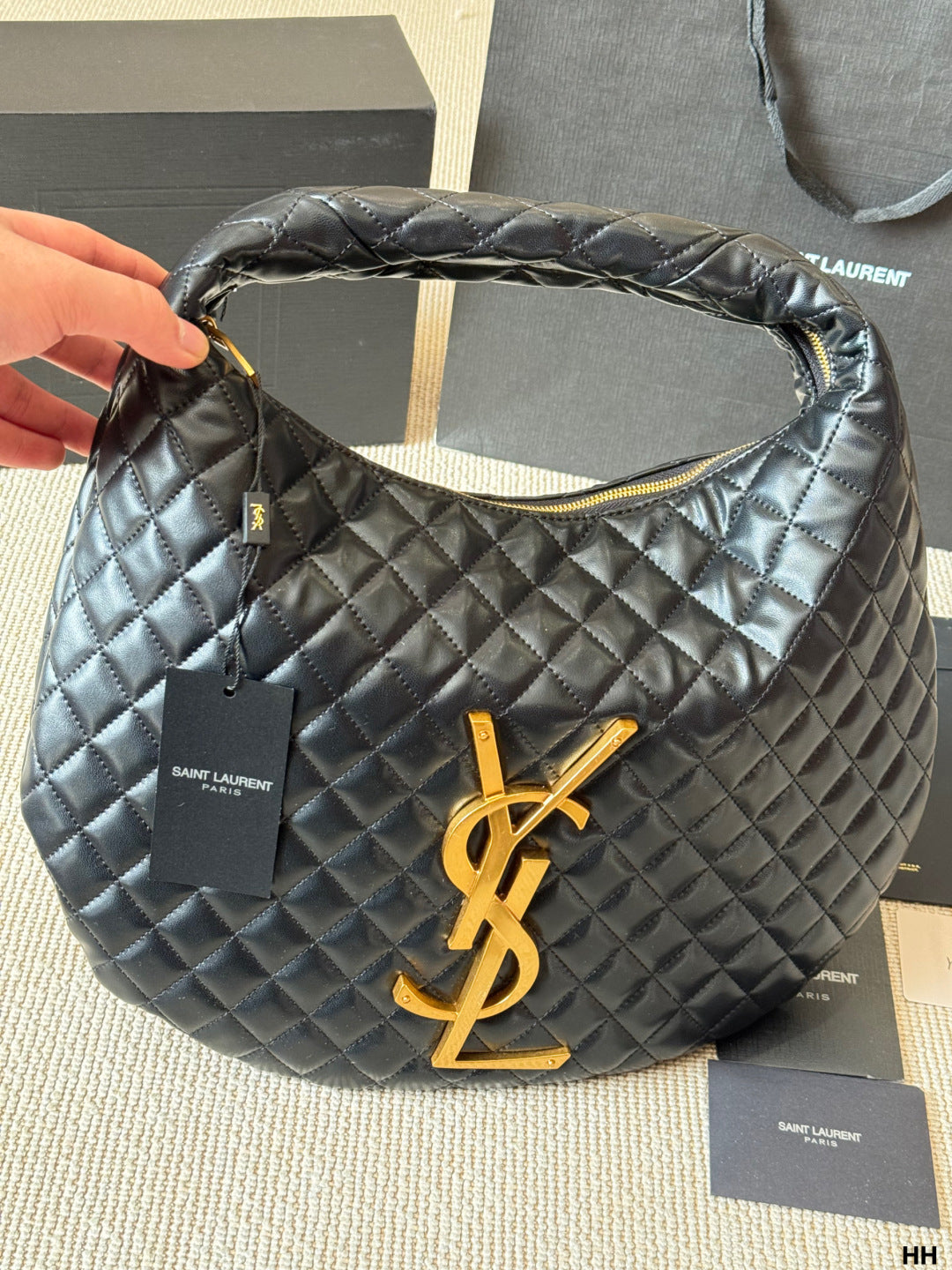 Underarm bag, black leather + classic diamond pattern, retro and fashionable✨. Half-moon bag shape, size: 35*30cm,