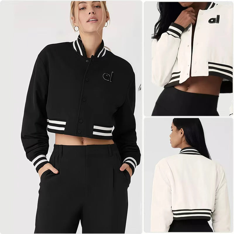 2025 spring and autumn al*o striped embroidered baseball jacket coat personality versatile loose trend
